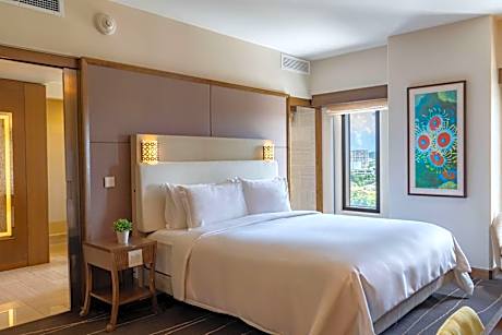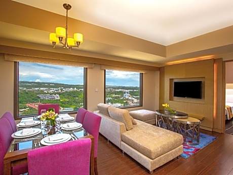Overlooking the turquoise waters of Tumon Bay, Dusit Thani Guam Resort offers breathtaking panoramic views from every room. This luxurious palm-fringed resort features a modern fitness center, and 6 on-site dining options to entice every palate. You can enjoy a relaxing dip in the outdoor swimming pool, or sip a cocktail from the pool bar. Free in-room WiFi is available. Boasting an beautiful beachfront location, Dusit Thani Resort is 3 minutes’ walk from Aquarium of Guam. Local shopping and dining options are within 10 minutes’ walk. Guam International Airport is 10 minutes’ drive away. Featuring stylish Thai-inspired décor, all rooms offer air-conditioning and a flat-screen TV with both Chinese and cable channels. The private bathroom includes a bathtub, a bidet, and bathrobes and slippers. Accommodations options include private rooms, suites, and villas. A kettle and a complimentary toothbrush and toothpaste are provided. The on-site restaurants offer a variety of cuisines including Thai at SOI, modern Italian at Alfredo's, barbecue at Tasi Grill pool bar and Aqua for all day dining. There is also Dusit Gourmet for deli sandwiches and salad, which operates 24-hours a day and Lobby Lounge that has a tapas menu and tea/coffee. After a day exploring the island, you can indulge in a massage from the tranquil Devarana Spa and Wellness center, or soak in the outdoor hot tub. The resort also features a kids club, tour desk, club lounge, and 9 conference and function rooms. There are Chinese speaking staff at the property and Union Pay credit cards are accepted.