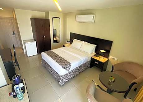Located within 5.3 miles of Aqaba Port and 10 miles of Tala Bay Aqaba, Dweik Hotel 2 has rooms in Aqaba. This 3-star hotel offers room service and an ATM. The property provides a 24-hour front desk, airport transportation, a shared lounge and free WiFi throughout the property. All guest rooms at the hotel come with air conditioning, a seating area, a flat-screen TV with satellite channels, a safety deposit box and a private bathroom with a bidet, free toiletries and a hairdryer. Every room has an electric tea pot, while certain rooms here will provide you with a terrace and others also provide guests with city views. The rooms will provide guests with a fridge. A buffet, continental or Italian breakfast is available at the property. At Dweik Hotel 2 you'll find a restaurant serving American and Local cuisine. Vegetarian and halal options can also be requested. Activities such as hiking, skiing, cycling can be enjoyed in the surrounding areas, and guests can relax along the beachfront. Popular points of interest near the accommodation include Al-Ghandour Beach, Royal Yacht Club and Aqaba Fort. King Hussein International Airport is 6.8 miles away.