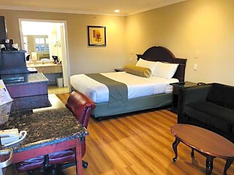 This hotel is off Interstate 215 and within 3 minutes' drive of the University of California - Riverside. All guest rooms offer free WiFi. A flat-screen TV and sitting area are featured in each room at Dynasty Suites Hotel. The rooms are also equipped with a microwave and refrigerator. The Suites Hotel Dynasty is across from University Village, which features shopping, dining and entertainment. Riverside city center is within 10 minutes' drive of the hotel.