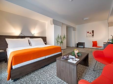 Set in a former tobacco factory building from the 19th century, EA Business Hotel Jihlava provides a restaurant. Guests can enjoy original building elements such as iron columns or stone jambs, tastefully integrated into modern interior. Free WiFi access is available. All allergy-free rooms include a TV, a safety deposit box, a mini-bar, and a bathroom fitted with a shower, a hairdryer and free toiletries. Breakfast is served each morning in a breakfast hall. Guests at EA Business Hotel Jihlava can make use of business facilities, as well as a tour desk and currency exchange. Paid parking is available in the hotel garage. Brno–Turany Airport is 53 mi away.