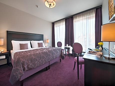 The Embassy Prague Hotel is stylish hotel, housed in a carefully restored Neo-Renaissance building dating back to 1880, offering quiet rooms of great elegance and comfort. Located in the center of Prague in a calm side lane, the very heart of the Golden City is easily accessible on foot or from the close-by metro station. Guests can choose from two parking options and park their car either in the hotel's garage or use public parking nearby. Both options are for surcharge and the costs differ.
