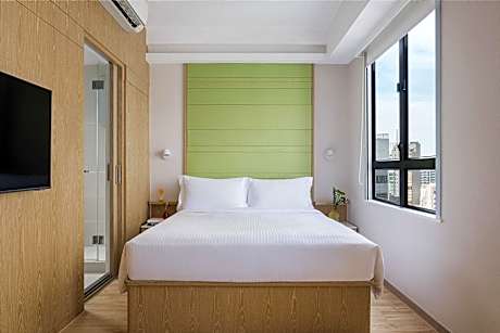 The double room has a private bathroom, air conditioning, a washing machine, as well as a seating area with a flat-screen TV. In the well-equipped kitchenette, guests will find a refrigerator, kitchenware, a microwave and a toaster. Among the room amenities are a dining area, a wardrobe and a safe deposit box as well as city views. The unit has 1 bed.