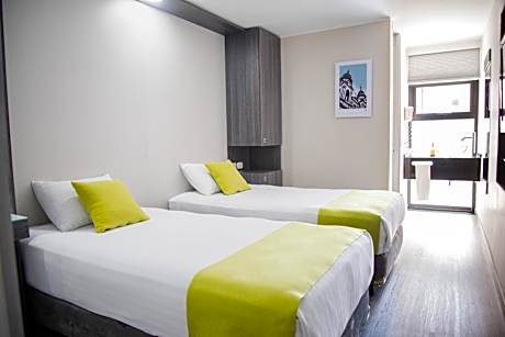 Located in the exclusive Golden Mile, just a few minutes from Perales Airport (5 mi), the Sports Complex (3.1 mi), and downtown Ibagué (2.2 mi), Eco Star Hotel offers a comfortable and sustainable experience for modern travelers. Our rooms are equipped with soundproof windows, air conditioning, flat-screen TV, safe, Wi-Fi, and a private bathroom with hot water. We also offer a room adapted for people with reduced mobility. Enjoy a varied breakfast with fresh products and Colombian coffee available 24/7. If you need to work, we offer coworking spaces with a screen and HDMI connection, as well as a meeting room with a capacity for 25 people. Committed to the environment, we use LED lighting, inverter air conditioners, and solar panels. We also have parking, 24/7 snacks, and personalized service to make your stay unforgettable.