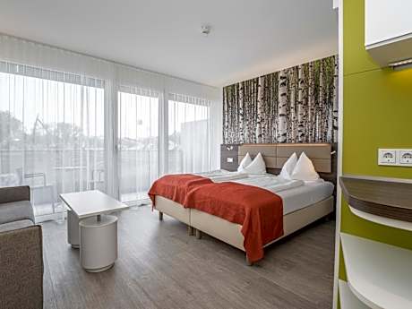 Opened in March 2016, the Eco Suite Hotel enjoys a quiet location next to the Salzach River, an 18-minute walk from Salzburg Main Train Station and a 25-minute walk from Mirabell Palace and Salzburg’s Old Town. Free WiFi and free private parking for cars and groups with busses are available. The rooms feature a movable flat-screen cable TV, a small kitchenette, a desk, a bathroom, and a separate toilet. In the Eco-Suite Hotel, breakfast is included in the room price. The rich breakfast buffet is located in our friendly and modern dining room in the Kolping House. The Messe Salzburg Exhibition Center is 1969 feet away. The Eco Suite Hotel has been awarded the Austrian Ecolabel for its commitment to environmentally friendly practices and sustainable hospitality.