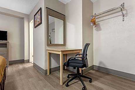 While visiting Syracuse University, the Great New York State Fair and the fall foliage in central New York, discover accommodations at this hotel. It is located on Route 5 East, which is accessible from Interstate 90 and Interstate 81. Local attractions include Green Lakes State Park, the Erie Canal Museum and ShoppingTown Mall. Carrier Circle (NYS Route 298) is three miles north of the hotel. Syracuse University and Le Moyne College are within five miles. Be sure to visit the Carousel Center mall, the largest super-regional shopping center in central New York. Turning Stone Casino, IMAX Theater and various ski areas are all close by. Many restaurants are close to this DeWitt hotel; KFC shares the same parking lot. Guests are invited to enjoy a free continental breakfast each morning. This is a pet-friendly hotel; nightly charges may apply. The business traveler will be happy to know they have access to a fax machine. All guest rooms in this charming DeWitt, NY hotel have free wireless Internet access, hair dryers, irons and ironing boards. Hot tubs are available in select rooms.