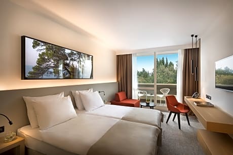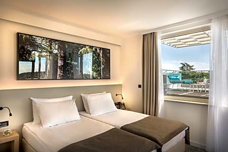 Surrounded by lush vegetation, Eden Hotel by Maistra Collection enjoys a peaceful location on the edge of the 100-year-old Zlatni Rt park forest in Rovinj. It offers outdoor and indoor pools and free beach chairs and parasols in the bay (subject to availability). The Wellness & Spa area has 4 treatment rooms and 1 spa suite for couple treatments, as well as a relax zone, modern fitness area and a Vitality bar (open during season). The thermal zone features a Finnish and infrared sauna, Steam room and a relax room. All rooms feature air conditioning, balcony and a satellite TV. Tasty Croatian and international food is served in the various restaurants. Eden Hotel by Maistra Collection provides diverse entertainment facilities such as hobby workshops and various land or water sports like tennis. There is an outdoor terrace with a stage and a mini club with entertainment for children. You can enjoy live music, various shows, folklore performances and the a-capella vocal ensembles called Klape. The outdoor pool complex includes 3 kinds of pools with various water effects like whirlpools and geysers. Sun-bathing terraces, restaurant, pool bar and a summer stage are also parts of the complex.