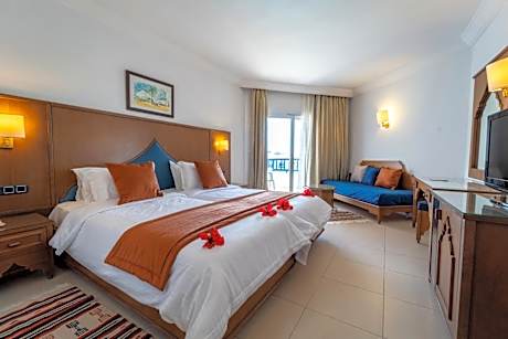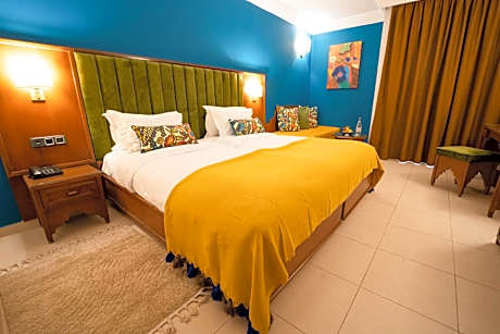 Eden Yasmine Hotel and Spa offers both an indoor and an outdoor swimming pool, a terrace with sun loungers and a furnished garden, just a 1-minute walk from Carthageland, in Yasmine Hammamet. There is also a fitness area, a sauna and hot tub. All of the rooms at Eden Yasmine Hotel and Spa are decorated in a modern, Tunisian style. Each room with attached bathroom features a safe, an LCD TV and a balcony or terrace. The suites also come with a seating area. A buffet breakfast is included and served each morning in the communal lounge. The hotel’s restaurant offers traditional dishes from the region for lunch and dinner. Other facilities at Eden Yasmine Hotel and Spa are a fitness area and free Wi-Fi in public areas. Beauty treatments and excursions to discover the area can also be organized, with an extra cost. Private parking is possible on site at an additional cost and the harbor of Hammamet is 1.2 mi away. The beach is 1969 feet away.