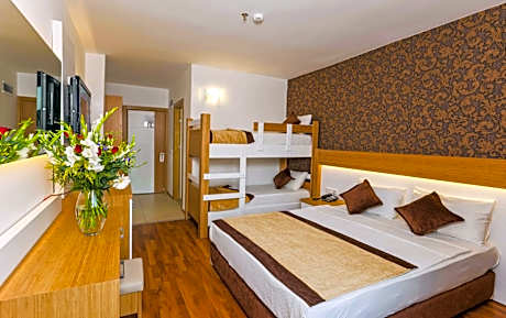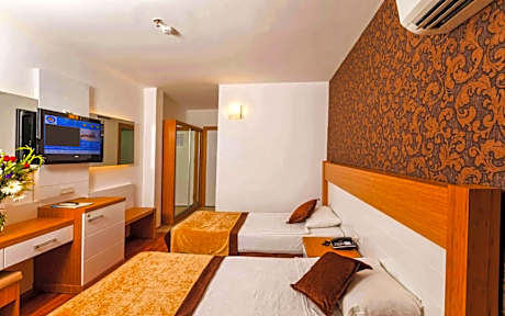 Eftalia Down Town features a seasonal outdoor swimming pool, garden, a restaurant and bar in Alanya. This 4-star hotel offers luggage storage space. The hotel provides city views, a sun terrace, a 24-hour front desk, and free WiFi is available. At the hotel, rooms have a closet. Every room is equipped with air conditioning, a safety deposit box and a flat-screen TV, and certain units at Eftalia Down Town have a balcony. Guest rooms will provide guests with a minibar. A buffet, continental or Full English/Irish breakfast is available at the property. Popular points of interest near the accommodation include Alanya Public Beach, Alanya Ataturk Square and Alanya State Hospital. Gazipaşa-Alanya Airport is 24 miles away.
