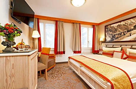 Family-run since 1886, the Hotel Eiger in the car-free resort of Mürren is located opposite the Mürren Train Station and offers a modern spa area with an indoor pool and panoramic mountain views. The entire hotel offers free Wi-Fi access. Spa facilities include a sauna, a sanarium and a hot tub. Fine Swiss and international cuisine is served in the restaurant of the Eiger Swiss Quality Hotel.