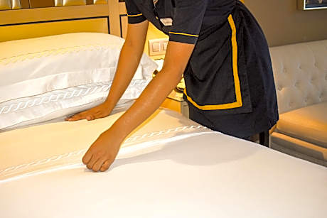 - Bed sheets and towels are washed at a temperature of at least 60°C/140°F