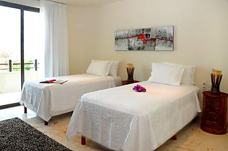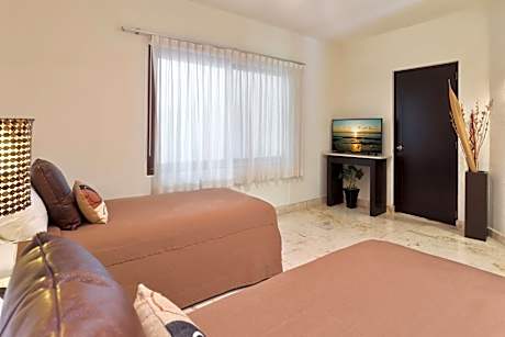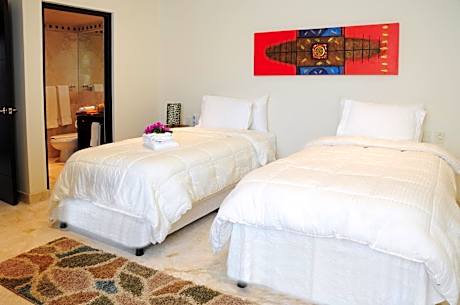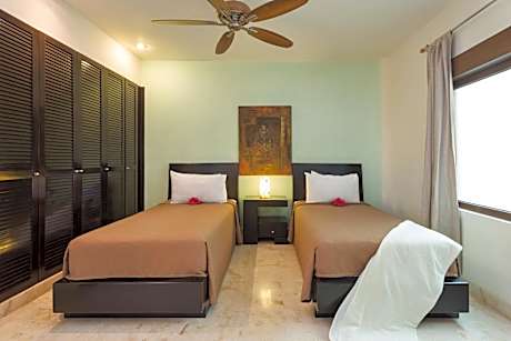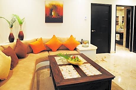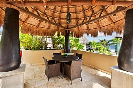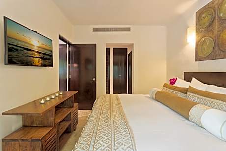Set in tropical gardens next to Playa del Carmen Beach, these luxury suites offer access to an infinity pool, outdoor hot tub and spa. Guests enjoy free access to the beach club. Suites at El Taj Oceanfront Condo Hotel offer a large terrace. El Taj property is composed by two buildings. Oceanfront suites offer sea views and direct beach access, while Beachside suites overlook the pool, fish pond and gardens. Each spacious suite has elegant Bali-inspired décor and a characteristic palapa thatched roof. A Smart TV and modern kitchen are included. Gourmet cuisine is served in El Taj Condo’s ASI restaurant, while pizzas, snacks and drinks are available in the beach bar. You can also request a private chef to prepare meals in your suite. El Taj is located in central Playa del Carmen, just 2 blocks from Fifth Avenue. This popular boulevard is home to boutiques, pavement cafés, bars and restaurants. License Number(s): 008-047-005780/2025