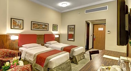 Elaf Bakkah Hotel provides flawless service and all the necessary facilities for visitors. Remain linked during your visit by utilizing the complimentary internet access available. Parking is accessible, supplied by the hotel for guests who arrive by car. Effortlessly plan your daily activities and travel requirements with concierge service, express check-in or check-out, luggage storage and safety deposit boxes provided by the front desk services.Securing top-notch tickets and reserving prime dining spots become effortless through assistance from the hotel's ticket service. For extended visits or whenever required, the dry cleaning service and laundry service ensures your preferred travel garments remain clean and accessible.During leisurely days and evenings, in-room amenities such as 24-hour room service, room service and daily housekeeping enable you to maximize your stay in the room. The hotel is completely smoke-free.In limited designated zones, smoking is exclusively permitted. Crafted for coziness, every guestroom provides an array of features, guaranteeing a tranquil night's sleep while maintaining the level of comfort. For a more enjoyable stay, select rooms at hotel are equipped with linen service and air conditioning.For certain chosen rooms, guests can enjoy in-room amusement like daily newspaper, television and cable TV as a part of their stay.Rest assured that your hydration needs will be met, as some guestrooms are equipped with a refrigerator and mini bar. It is worth noting that certain guest bathrooms feature a hair dryer and toiletries for your convenience. Each morning at Elaf Bakkah Hotel, a scrumptious, homemade breakfast kick-starts the day. Begin your holiday mornings right with your essential cup of coffee, offered daily at the cafe on-site. During your visit, indulge in a range of delightful culinary choices at hotel to enhance your experience.Concerned about your dining preferences? Fret not! Elaf Bakkah Hotel offers an assortment of culinary varieties featuring halal choices, catering to all tastes.Experience a fantastic evening effortlessly! Relish an entertaining night without venturing beyond the confines of the bar.Elaf Bakkah Hotel provides a superb assortment of leisure amenities for guests to enjoy. Treat and spoil yourself by stopping at massage and salon for a memorable experience.