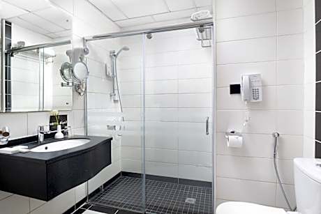 This air-conditioned room offers a flat-screen TV, a mini-bar and an electric kettle. The bathroom is fitted with a bath and a shower.