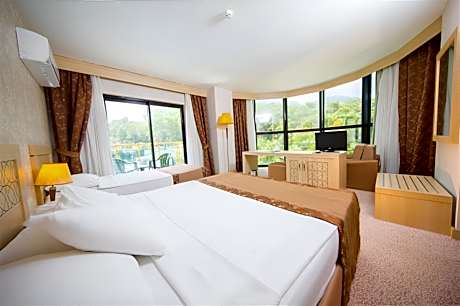Eldar Resort Hotel offers top-notch services and amenities, ensuring guests experience utmost comfort.Maintain seamless communication using the complimentary Wi-Fi at resort. Effortlessly arrange transportation to and from the airport using the resort's airport transfer services. Discovering Kemer becomes even more accessible through the taxi, car hire and shuttle amenities provided at the resort. For visitors traveling by automobile, complimentary parking is available. Reception assistance is offered at the resort featuring luggage storage. In search of city's top entertainment, seek assistance at the resort's ticket service and tours for reservations. For extended visits or whenever required, the laundry service ensures your preferred travel garments remain fresh and accessible.Craving relaxation? Make the most of your stay at the Eldar Resort Hotel with convenient amenities like 24-hour room service and daily housekeeping at your disposal.For all your minor, last-minute requirements, the convenience stores can promptly cater to them, eliminating the need to venture out. For visitors wishing to smoke, designated smoking zones can be found. At Eldar Resort Hotel, every guestroom is provided with convenient amenities and fittings to ensure a comfortable stay.Enhance your experience at resort with the knowledge that certain rooms are equipped with linen service, blackout curtains and air conditioning for your convenience. A few accommodations within Eldar Resort Hotel offer unique design elements such as a balcony or terrace.Certain rooms offer in-room amusement features such as the cable TV for your enjoyment.In select rooms at the resort, mini bar is available for those moments when it seems necessary. In the resort, certain guest bathrooms come equipped with essential bathroom amenities, such as a hair dryer and toiletries, ensuring a comfortable stay for guests. Begin your day carefree at Eldar Resort Hotel, as complimentary breakfast is offered for your convenience. At the resort, an assortment of easily accessible and delicious meal choices are available to satisfy your appetite whenever it strikes.At Eldar Resort Hotel, they are committed to catering to your unique requirements. They offer a variety of meal choices, encompassing halal alternatives for those with special dietary preferences.Create unforgettable moments with your fellow voyagers just steps away, at resort's karaoke rooms, bar and nightclub, for a delightful evening together.During your stay at resort, an array of engaging activities and amenities guarantees a delightful experience.During your stay, don't forget to allocate some moments to experience the readily available shoreline.Conclude your holiday perfectly with a visit to massage, steam room, spa and sauna on your final days. Be sure to drop by the pool at resort at least once during your stay.At Eldar Resort Hotel, utmost care is taken to ensure guests' comfort. Relish your preferred beverage in your swimwear by the resort's poolside bar.Discover the fitness amenities at resort to maintain your health and strength during your getaway.