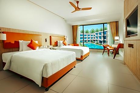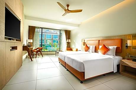 Providing free toiletries and bathrobes, this twin room includes a private bathroom with a walk-in shower, a hairdryer and slippers. The spacious air-conditioned twin room provides a flat-screen TV with cable channels, a mini-bar, a tea and coffee maker, a wardrobe as well as pool views. The unit offers 2 beds.