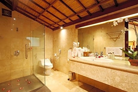 The hotel is located just 20 minutes north from the islands cultural and artistic centre of Ubud and 75 minutes north of Ngurah Rai Airport in the historic village of Taro. Guests will wake up to the sight and sound of a herd of elephants meandering to the lake for their morning bathing ritual whilst they enjoy a gourmet breakfast from the Mammoths Head Bar terrace overlooking 3. 5 hectares of pristine tropical parklands and unspoiled national forest.