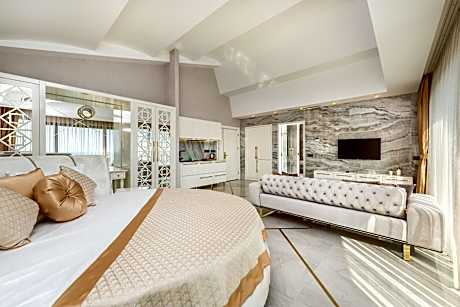 Located in Alanya, a 17-minute walk from Konakli Beach, Elite Luxury Suite & Spa has accommodations with an outdoor swimming pool, free private parking, a fitness center and a garden. Featuring room service, this property also provides guests with a water park. The property provides a 24-hour front desk, airport transportation, a shared lounge and free WiFi throughout the property. All rooms come with air conditioning, a flat-screen TV with satellite channels, a minibar, a electric tea pot, a shower, free toiletries and a closet. Some rooms also feature a kitchen with a fridge. A buffet breakfast is available at the hotel. At Elite Luxury Suite & Spa you'll find a restaurant serving Mediterranean, Pizza and Seafood cuisine. Vegetarian, halal and vegan options can also be requested. The accommodation offers a sauna. You can play pool and table tennis at Elite Luxury Suite & Spa, and car rental is available. Alanya Bus Station is 6.2 miles from the hotel, while Alanya Aquapark is 7.2 miles from the property. Gazipaşa-Alanya Airport is 33 miles away.