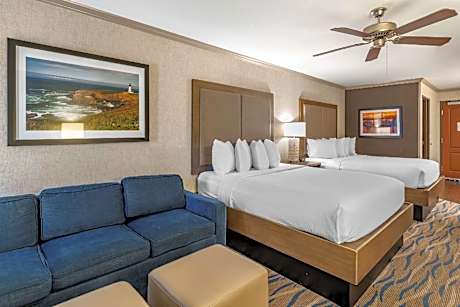 Nestled on a scenic bluff in Newport, Oregon, Elizabeth Oceanfront Suites, Ascend Hotel Collection, offers a memorable stay with stunning views of the Pacific Ocean. Located within walking distance of Nye Beach, this oceanfront hotel features spacious rooms with fireplaces, balconies with ocean views, and comfortable sofas, providing a cozy and inviting atmosphere.