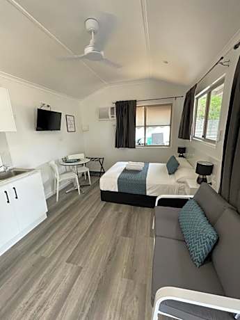 Located on a 3.1 mi strip golden sand, Ellis Beach Oceanfront Holiday Park features a swimming pool, children’s pool and restaurant. Each self-catering bungalow has direct beach access. Located halfway between Cairns and Port Douglas, Ellis Beach Oceanfront Holiday Park is 3.1 mi from Palm Cove and 19 mi from Cairns Airport. Clifton Beach shopping center is a 10-minute drive away. These spacious bungalows are located directly on the beach and include a kitchenette, air conditioning, flat-screen TV, and a private patio with outdoor seating. Guests have access to self-service laundry facilities and coin-operated BBQs with covered seating area. Free on-site parking is provided. The general store and souvenir shop is open every day. Ellis Bar and Grill serves international cuisine, such as burgers and pizzas. Located across the street from the bungalows, it offers ocean views at breakfast, lunch and dinner.