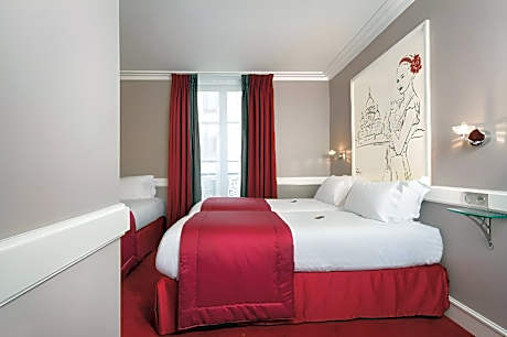 Hotel Sleeping Belle - Gare de Lyon Bastille sits just 2297 feet from the Place de la Bastille in the east of Paris and a 3-minute walk to the Gare de Lyon Train Station. Its rooms with attached bathroom have free WiFi. The modern rooms feature red and white décor. They all have a flat-screen TV and air-conditioning. A buffet breakfast is available daily from 05:00 to 11:00 and can be served to your guest room at an additional charge. Noter Dame Cathedral is a 15-minute walk from the hotel. The Metro Line 1 is 2297 feet away and offers direct access to the Louver Museum, the Champs-Elysées and the La Défense business district.