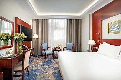 Emaar Royal Hotel Al Madinah offers top-notch services and amenities, ensuring guests experience utmost comfort.Maintain seamless communication using the complimentary Wi-Fi at hotel.Discovering Medina becomes even more accessible, thanks to the taxi amenities provided at the hotel.For visitors traveling by automobile, complimentary parking is available. During your stay at this fantastic hotel, the attentive front desk personnel can provide you with a range of amenities such as concierge service, express check-in or check-out, luggage storage and safety deposit boxes.At the hotel, utilize the on-site dry cleaning service and laundry service to maintain your beloved travel attire fresh, allowing you to bring fewer clothes. Craving relaxation? Make the most of your stay at the Emaar Royal Hotel Al Madinah with convenient amenities like 24-hour room service, room service and daily housekeeping at your disposal.Kindly note that smoking is prohibited in the hotel to ensure fresher air for all visitors.For visitors wishing to smoke, designated smoking zones can be found.At Emaar Royal Hotel Al Madinah , every guestroom is provided with convenient amenities and fittings to ensure a comfortable stay.Enhance your experience at hotel with the knowledge that certain rooms are equipped with linen service, blackout curtains and air conditioning for your convenience.Certain rooms offer in-room amusement features such as the television for your enjoyment. In select rooms within the hotel, a refrigerator and bottled water is available to cater to your requirements when desired.In the hotel, certain guest bathrooms come equipped with essential bathroom amenities, such as a hair dryer and towels, ensuring a comfortable stay for guests. Begin your day with a scrumptious on-site breakfast available each morning at Emaar Royal Hotel Al Madinah . Begin your day feeling refreshed and invigorated as you enjoy a delightful cup of quality coffee available at the cafe situated within the hotel.At the hotel, an assortment of easily accessible and delicious meal choices are available to satisfy your appetite whenever it strikes.At Emaar Royal Hotel Al Madinah , they are committed to catering to your unique requirements. They offer a variety of meal choices, encompassing halal alternatives for those with special dietary preferences. At Emaar Royal Hotel Al Madinah , guests can access vending machines that provide light snacks and beverages 24 hours a day.