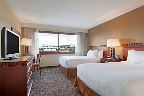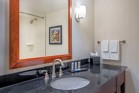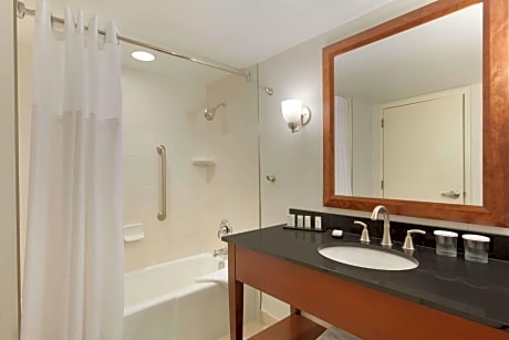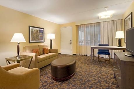 Located off Interstate 95 in Waltham, Massachusetts, this hotel is within a 20-minute drive from Brandeis University and Bentley University. It features on-site dining and a heated indoor pool. Each suite at this Waltham Embassy Suites is decorated in Americana colors and includes a seating area with a sofa bed and 40 inch Smart TVs with Hilton Connect, which allows you to log into your Netflix or Showtime Accounts. A large work desk is provided as well as a microwave and refrigerator. The on-site gym features a variety of cardio equipment and free weights. A 24-hour convenience store and a business center are located off of the lobby. The Grille at Hobbs Brook, also part of this Waltham hotel, serves contemporary American dishes. Its breakfast buffet includes eggs, pancakes, and fresh fruit. The Atrium Lounge is located on the eight floor and offers drinks in a casual atmosphere. Hanscom Air Force Base is 6.3 mi from Embassy Suites Boston Waltham. Downtown Boston is 14 mi away.