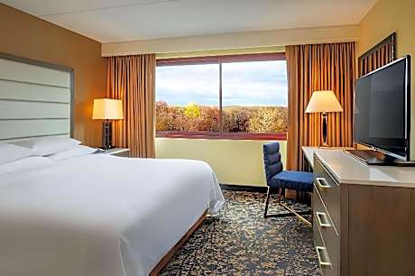 Located off Interstate 95 in Waltham, Massachusetts, this hotel is within a 20-minute drive from Brandeis University and Bentley University. It features on-site dining and a heated indoor pool. Each suite at this Waltham Embassy Suites is decorated in Americana colors and includes a seating area with a sofa bed and 40 inch Smart TVs with Hilton Connect, which allows you to log into your Netflix or Showtime Accounts. A large work desk is provided as well as a microwave and refrigerator. The on-site gym features a variety of cardio equipment and free weights. A 24-hour convenience store and a business center are located off of the lobby. The Grille at Hobbs Brook, also part of this Waltham hotel, serves contemporary American dishes. Its breakfast buffet includes eggs, pancakes, and fresh fruit. The Atrium Lounge is located on the eight floor and offers drinks in a casual atmosphere. Hanscom Air Force Base is 6.3 mi from Embassy Suites Boston Waltham. Downtown Boston is 14 mi away.