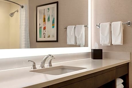 Located 9 minutes' drive from the Baltimore/Washington International Airport, this Embassy Suites by Hilton Baltimore at BWI Airport hotel features a free airport transfer service. Free WiFi is offered and free on-site parking is available. All guest suites feature separate living rooms and bedrooms, refrigerator, microwave and flat-screen TV. There is an indoor pool, fitness center and business center at Embassy Suites by Hilton Baltimore at BWI Airport. The hotel provides guests with a free cooked-to-order breakfast. Guests are also offered a free nightly manager's reception. The hotel features free shuttle service to the nearby AmTrak train station and the Marc light rail system, which lead directly to the downtown area. The Baltimore city center is 8 miles away.