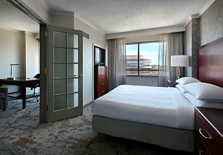 This all-suite Embassy Suites by Hilton Bethesda Washington DC has an indoor and outdoor swimming pool, a fitness center and an on-site restaurant. The rooms at the Embassy Suites by Hilton Bethesda Washington DC have a flat-screen TV, wet bar, fridge, and coffee-making facilities. They also include 300-thread count linens and a sofa bed. Wii game consoles are available upon request. The Darcy's Kitchen & Bar serves American cuisine. The restaurant is open during dinner and offers free WiFi. Embassy Suites by Hilton Bethesda Washington DC also offers an on-site ATM machine, vending machines and a souvenir shop. Embassy Suites by Hilton Bethesda Washington DC is located 9.9 mi from the White House and 20 mi from downtown Washington, DC.