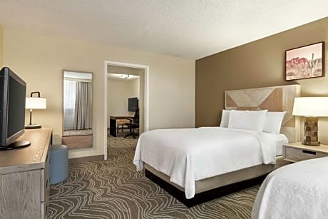 Embassy Suites by Hilton Phoenix-Tempe offers thoughtfully designed suites that ensure a relaxing stay. Each suite features separate sleeping and living areas, providing ample space for relaxation or catching up on work. Guests are treated to modern conveniences such as state-of-the-art flat-screen TVs, MP3/iPod compatible radios, along with essential in-room amenities like microwaves and refrigerators to make your stay as comfortable as possible.