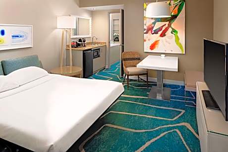 Located in the heart of Downtown San Diego, Embassy Suites By Hilton San Diego Bay Downtown provides a perfect blend of comfort and convenience. Guests can enjoy spacious, air-conditioned suites that include a TV, living area with a sofa bed, armchair, and a well-lit work area. Each suite also features a microwave, refrigerator, and coffee machine for added convenience.