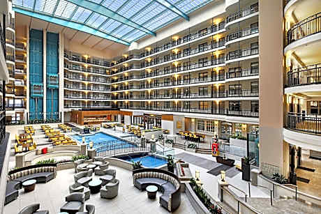 Embassy Suites by Hilton Anaheim North ensures a comfortable stay with its spacious suites and numerous amenities. Guests can start the day with a free cooked-to-order breakfast and unwind in the evening at the reception. The hotel’s shuttle service makes it easy to visit Disneyland and the Anaheim Convention Center. On-site dining options and ticket purchases for local theme parks add to the convenience. The hotel's tranquil atmosphere, complete with a waterfall, koi ponds, and exotic plants, provides a relaxing escape. Whether visiting for business or pleasure, Embassy Suites by Hilton Anaheim North is a perfect choice.