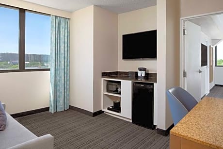 Just 3 miles from the Tampa International Airport, the Newly Renovated Embassy Suites by Hilton Tampa Airport Westshore also features a Complimentary Made-to-Order Breakfast and Evening Reception with beverages and light snacks. After a busy day, guests can relax in a spacious 2-Room Suite or a King Studio Room with amenities such as refrigerators, microwaves and high-speed internet access. Embassy Suites by Hilton Tampa Airport Westshore features an outdoor pool and state-of-the-art fitness center and 24-hour Marketplace. The E'terie Bar & Grill serves casual cuisine with a few Tampa favorites and is available for daily Room Service and Dinner.