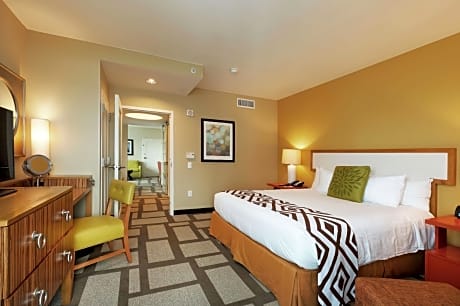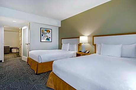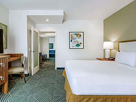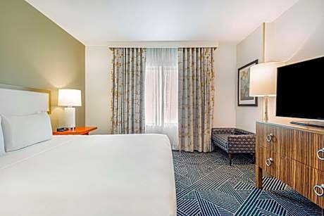 This all-suite Houston hotel, overlooking Discovery Green Park, is 2625 feet from the George R. Brown Convention Center. Free shuttle service downtown is offered and each room includes 2 flat-screen TVs. Suites at the Embassy Suites Houston - Downtown feature a separate living room with a sofa bed. Each suite comes furnished with a microwave and a refrigerator. All suites have free WiFi. Guests at Downtown Houston Embassy Suites can swim in the rooftop pool or relax in the hot tub. The hotel has a business center and a gym. Daikin Park, home of the Houston Astros, is a 5-minute drive from the Embassy Suites. The hotel is 4 mi from the Houston Zoo.