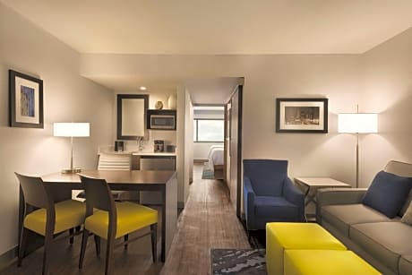 Spacious two-room suites come equipped with microwaves, refrigerators, and MP3/iPod compatible radios, designed to cater to the needs of modern travelers. From the free cooked-to-order breakfast to the evening reception, every detail at the Embassy Suites by Hilton Indianapolis Downtown is crafted for guest satisfaction.