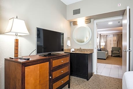 Located near Interstate 240, this hotel is 8 mi from Memphis International Airport. Features include an on-site restaurant and spacious suites with two streaming flat-screen TVs. In addition to Free WiFi, every modern suite at the Embassy Suites Memphis is equipped with a microwave, refrigerator and coffee maker. A seating area with sofa bed is standard in all suites as well. Guests of the Memphis Embassy Suites can enjoy free access to the indoor pool and fitness center. Frank Gristanti’s Restaurant specializes in Northern Italian cuisine for lunch and dinner. Breakfast buffet is available daily at the Embassy Suites Memphis. Parking is provided at the hotel at a fee of $10, which is 4 miles from Audubon Golf Course. Graceland, the former home and museum of Elvis Presley, is 8.9 mi away.