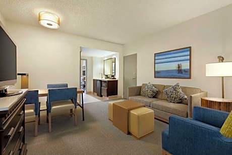 - Spacious suites featuring two cable TVs and a cozy living room with sofa bed