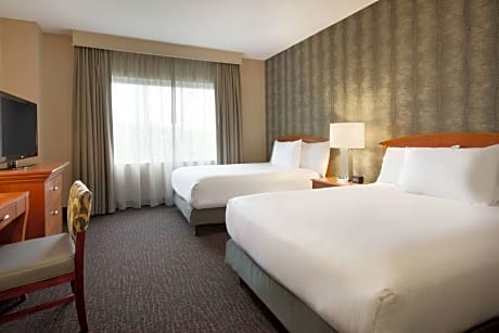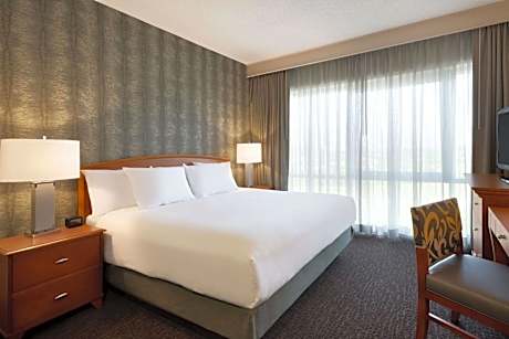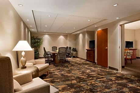 This hotel is 20 minutes south of Nashville in historic Franklin, TN. It offers a free shuttle to locations within a 5 mi radius of hotel. The Embassy Suites by Hilton Nashville South/Cool Springs features an indoor swimming pool, sauna and whirlpool. There is a fitness center and a business center for guests to use. Helpful amenities include laundry, dry cleaning, and an on-site ATM. Also EV chargers for a surcharge are available. All guest suites have a dining area and a seating area with a sofa bed. The rooms come furnished with a microwave and refrigerator. WiFi is available for a surcharge. A full, made-to-order breakfast is served every morning at the Cool Springs Embassy Suites. An on-site restaurant, the Athletic Bar & Grill, is open for lunch and dinner. Room service is available. CoolSprings Gallaria is under 2 miles' drive from the Nashville South/ Cool Springs Embassy Suites. The Nashville International Airport is just over 20 mi away.