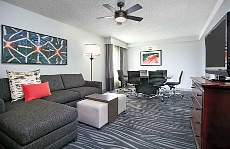 This all-suites hotel features a complimentary breakfast. SeaWorld Orlando is 12 mi from the property. Guests can enjoy in-room microwaves and refrigerators. A flat-screen TV is available in each suite. iPod and MP3 compatible radios are available, as well. The property has a fitness center and an outdoor pool for guests to enjoy. The hotel offers free shuttle service to the airport. Orlando International Airport is 2.4 mi from the Embassy Suites by Hilton Orlando Airport. Disney Springs is 20 mi from the property.