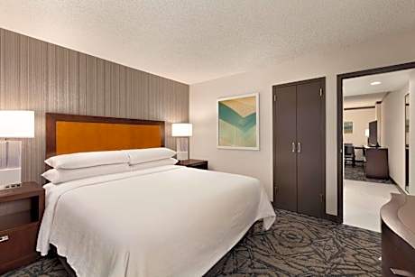 This Embassy Suites by Hilton Santa Clara Silicon Valley offers comfortable rooms and studio suites. Guests can enjoy a free cooked-to-order breakfast each day and evening reception each day. Levi’s Stadium is 7 minutes’ drive away. Each accommodations at Embassy Suites Santa Clara – Silicon Valley includes an HDTV, a microwave, a refrigerator and a coffee machine. Guests can relax in the indoor swimming pool or workout in the modern fitness center at Embassy Suites Santa Clara – Silicon Valley. The on-site Valley Plaza Café offers a dinner menu of American favorites. A children’s menu is also available. A free evening reception with snacks and drinks is provided to guests. The campus of Stanford University is 12 mi away from this hotel. J. Lohr Vineyards and Winery is 15 minutes' drive away. California’s Great America amusement park is 5 minutes’ drive from Embassy Suites Santa Clara – Silicon Valley.