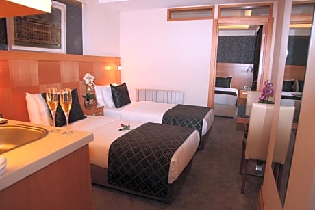 Located in an elegant building just 820 feet from the bustling Taksim Square, Emerald Hotel offers free WiFi. Complimentary hot beverages are offered in public areas throughout the day. The guest rooms at the Emerald Hotel feature a satellite LCD TV, air conditioning and a seating area. Also available are a mini-bar and coffeemaker. The suites come fitted with a private spa bath and a dishwasher. The Emerald Hotel offers a continental breakfast that includes fresh fruits and olives. Guests can connect to the internet in the hotel lobby with plenty of seating or at the Emerald’s bar. Taksim Square offers easy access to other parts of Istanbul by metro, tram, minibus, and funicular. There are also many restaurants and bars in close proximity to the Emerald Hotel. Istanbul Airport is within 26 mi. Lutfi Kirdar Convention Center, Istanbul Congress Center, Cemal Resit Rey Concert Hall and Muhsin Ertugrul Theater are within 0.8 mi distance. Taksim Acibadem Hospital is a 2-minute walking distance.