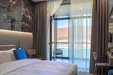 Located in Lviv, 5.4 miles from The Palace of Siemienski-Lewickis, Emily Resort provides accommodations with an outdoor swimming pool, private parking, a private beach area and a terrace. With free WiFi, this 5-star resort offers a kids' club and room service. Guests can use the spa and wellness center with an indoor pool, fitness center, and sauna, as well as free bikes. The resort will provide guests with air-conditioned rooms with a closet, an electric tea pot, a safety deposit box, a flat-screen TV, a balcony and a private bathroom with a shower. Selected rooms contain a kitchen with a fridge, a dishwasher and an oven. A buffet, continental or Italian breakfast is available at the property. At Emily Resort you'll find a restaurant serving Steakhouse, Asian and European cuisine. Vegetarian, vegan and gluten-free options can also be requested. The accommodation offers a hot tub. Guests at Emily Resort will be able to enjoy activities in and around Lviv, like hiking, skiing and cycling. Languages spoken at the 24-hour front desk include English, Polish and Ukrainian. The Ensemble of Ruska Street is 5.5 miles from the resort, while The Bernardine Monastery is 5.6 miles away.