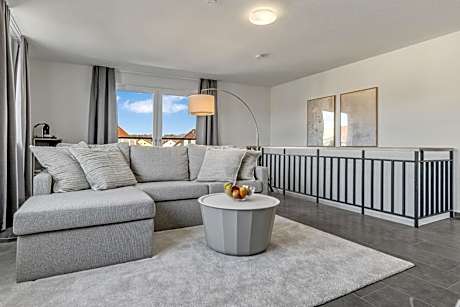Empire Living: Denzlingen Marktplatz enjoys a location in Denzlingen, 6.6 miles from Messe Freiburg and 7.1 miles from Freiburg Central Station. Housed in a building dating back to 2021, this condo hotel is 7.2 miles from Freiburg Cathedral and 23 miles from Europa-Park. The accommodation provides an elevator and private check-in and check-out for guests. Each unit comes with a sofa, a seating area, a flat-screen TV with streaming services, a well-equipped kitchen with a dining area, and a private bathroom with a hair dryer. A microwave, a toaster, and fridge are also featured, as well as a coffee machine and a kettle. At the condo hotel, the units are equipped with bed linen and towels. A mini-market is available at the condo hotel.
