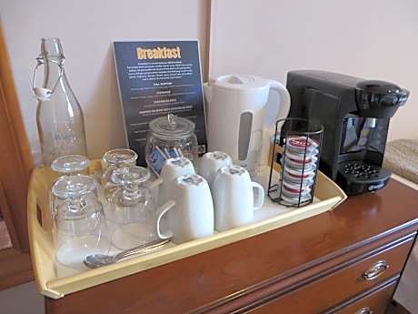 The Glamping Pod En-Suite accommodates a maximum of 2 people (including children) and is a minimum 2 night stay! The Pod can be configured as a Double Bed (the most popular) or two Single Beds (Twin). The Pod is fitted with a Heater, TV, Bluetooth Music System, Bar Fridge, Kettle and Tassimo Coffee Machine. All Linen and Towels are provided.