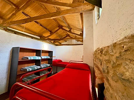 This dormitory room has a shared bathroom, a tiled floor and mountain views. The unit has 4 beds.
