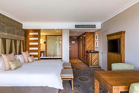 Arabella Hotel & Spa is overlooks a spectacularly attractive natural lagoon, surrounded by a lush landscape. The hotel features a 18-hole golf course designed by Peter Matkovich. Hermanus is within 30 minutes' drive and Cape Town International Airport is 54 mi away. Airport transfers can be arranged. With a balcony, the elegant rooms and suites at Arabella Hotel include air conditioning, a seating area, desk and a TV. Each has a private bathroom with free toiletries. Room service is available. Jamani Restaurant offers international and contemporary South African cuisine. Drinks, light meals and cocktails can be enjoyed at Barnabas Bar, overlooking the pool. Rejuvenate at the Arabella Spa, in the sauna and with a soothing massage. Energize at the gym or on the tennis court. Follow all with a dip in the pool. Relax also, in the pretty gardens or on the terrace. The friendly staff will help with setting up the full range of activities, including wine tasting, whale watching and horse riding. Rent a bike to explore the landscape, or see it from the sea, while kayaking.