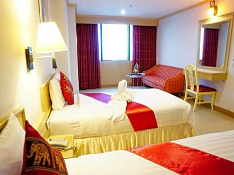 Located in Bangna, 2.7 miles from Bangkok International Trade and Exhibition Center BITEC, Bay Hotel Srinakarin has accommodations with a fitness center, free private parking, a garden and a shared lounge. The property has a bar, as well as a restaurant serving Thai cuisine. The property provides a 24-hour front desk, airport transportation, room service and free WiFi. Complete with a private bathroom equipped with a shower and free toiletries, the rooms at the hotel have a flat-screen TV and air conditioning, and certain rooms contain a seating area. Guest rooms will provide guests with a desk and an electric tea pot. A buffet, à la carte or continental breakfast is served at the property. Mega Bangna is 4.1 miles from Bay Hotel Srinakarin, while Queen Sirikit National Convention Center is 8.7 miles from the property. Suvarnabhumi Airport is 10 miles away.