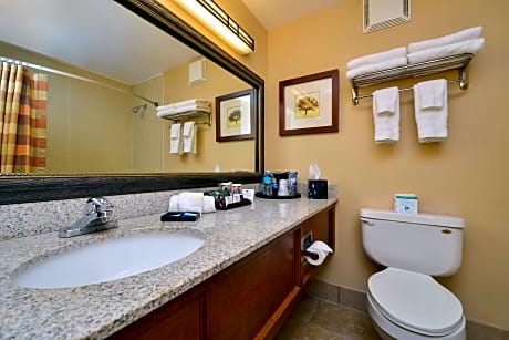Located at the crossroads at I-25 and US-34 in Loveland, this hotel is half a mile from Promenade Shops at Centerra and Loveland Outlet Mall. Free Wi-Fi and a hot breakfast is provided for all guests. A microwave, small fridge and coffee-making facilities are featured in each room at Best Western Plus Crossroads Inn and Conference Center. A cable TV and work desk are also provided. Monroe's Lounge, open daily for dinner, serves American cuisine and specialty cocktails. A seasonal outdoor swimming pool is available for guest relaxation. A 24-hour front desk welcomes guests at Conference Center Best Western Plus Crossroads Inn. A large dog exercise run is on site. Estes Park and Rocky Mountain National Park are 30 miles away. Denver International Airport is a 50-minute drive from Best Western Plus Crossroads Inn and Conference Center.