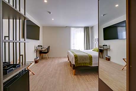 Located in Saint-Dizier of the Champagne-Ardenne Region, Brit Hotel Confort Saint-Dizier offers free Wi-Fi access in the entire hotel and air-conditioning. The Lake Der-Chantecoq is just a 20-minute drive away. All rooms are soundproofed and they are equipped with a flat-screen TV with cable channels and a desk. The private bathroom includes a hairdryer. A buffet breakfast is available daily at the hotel. Guests can also enjoy a drink in the hotel’s bar. Orient Forest Regional Natural Park is a 45-minute drive away and Nancy is just over an hour away by car. The A26 motorway is ideally located 31 mi away and free private parking is possible on site.