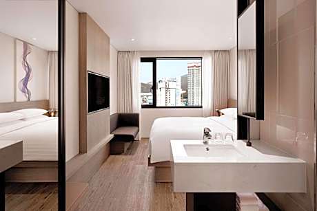 Fairfield by Marriott Busan provides flawless service and all the necessary facilities for visitors.Visitors can take advantage of the accessible parking options directly at the hotel. The accommodating team at the reception will aid you with amenities such as safety deposit boxes. Room amenities feature daily housekeeping, allowing you to unwind and make the most of your visit. Each accommodation at Fairfield by Marriott Busan is thoughtfully created and adorned to provide visitors with a comfortable, home-like atmosphere. In select rooms, guests can enjoy a touch of amusement with the availability of cable TV for their entertainment. Rest assured, in a few chosen rooms, the presence of instant tea can be found. Maintain your cleanliness and comfort using a hair dryer and bathrobes available in select guest restrooms. License Number(s): 제 201800010 호